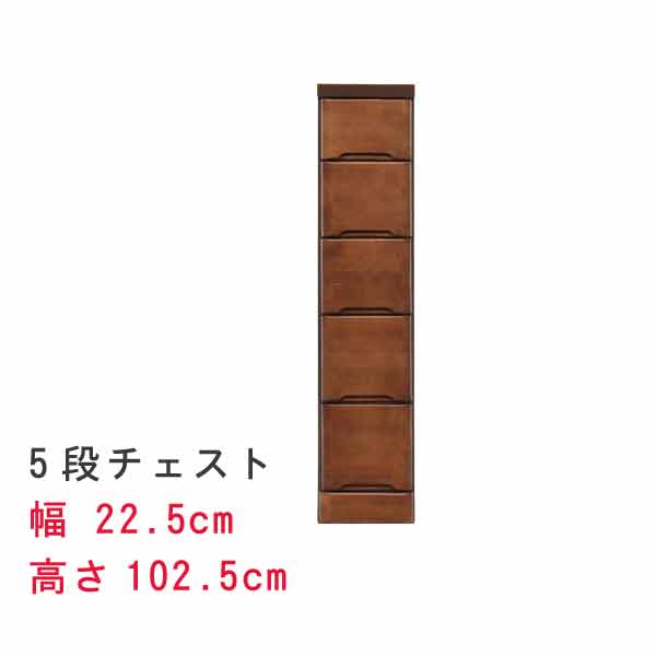 すきまスリムなチェスト 幅22.5cm 5段チェスト ブラウン チャ スキマ収納 隙間収納 サニタリー家具 ランドリーチェスト すき間チェスト ランドリー家具 隙間チェスト サニタリー収納 すきま【S3】[G2]【sm-180】【QST-180】
