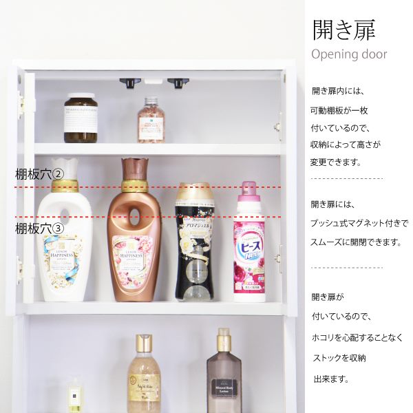 トイレ隙間収納 半透明扉 高さ178cm幅25〜29cm奥行40cm 上下共片開き(左開き/右開き) ロビースリム棚