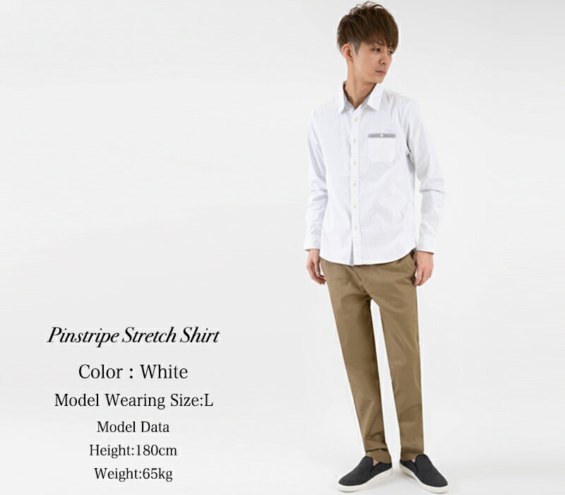 メンズ 春 夏 秋 冬 オールシーズン Mサイズ Lサイズ LLサイズ 長袖 スリムシャツ カッターシャツ ストライプシャツ 無地シャツ プレゼント ギフト 贈り物 お祝い 父の日 海の日 敬老の日 七夕 誕生日 結婚記念日 退職祝い 夏フェス コンサート キャンプ アウトドア レジャー リゾート素肌に優しい肌触りで季節問わず、着まわし可能!! ストレッチ入りで、伸縮性にも優れたストレスのない一着。