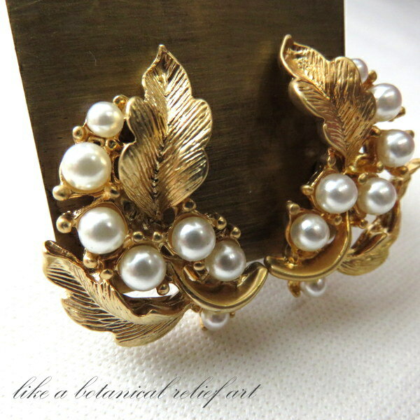 .:・適度なボリューム感ある、大人ナチュラルモチーフの可愛さを楽しむためのイヤリング!彫刻みたいなリーフを、メタルで上手に動き豊かに表現してあります。