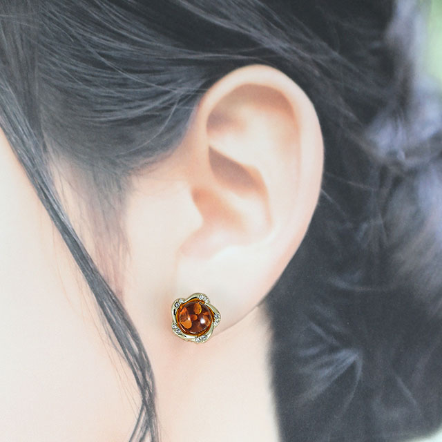 長い年月をかけて固まった琥珀の魅力を感じることができるイヤリングです。