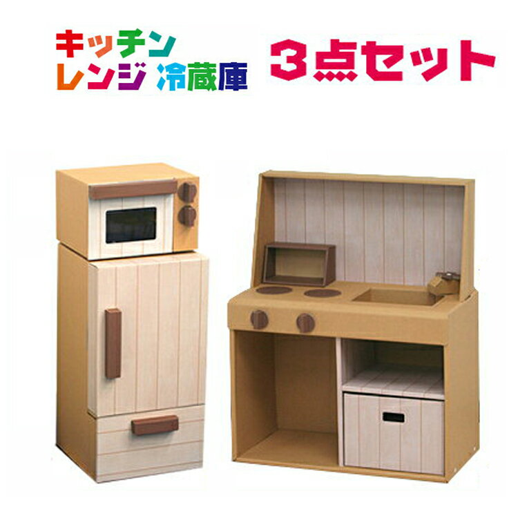 ままごと おままごと ダンボール キッチン おままごとダンボール3点セット クリスマス プレゼント キッチン・冷蔵庫・レンジが揃って送料無料の特別価格 木製に負けないクオリティ ダンボールキッチン 段ボールおもちゃ