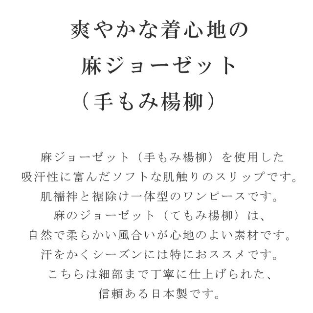 日本製 本麻手もみ揚柳 女性用 スリップ 夏に最適な爽やかな履き心地 洗えるウォッシャブルタイプ【メール便対応OK】着物用