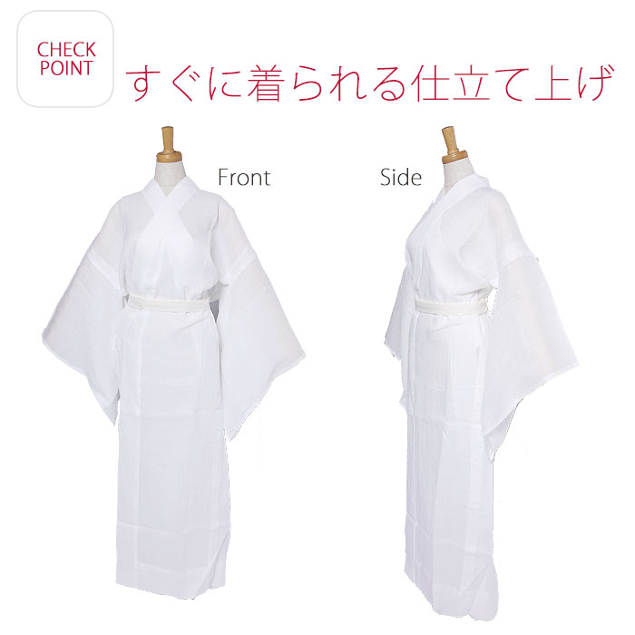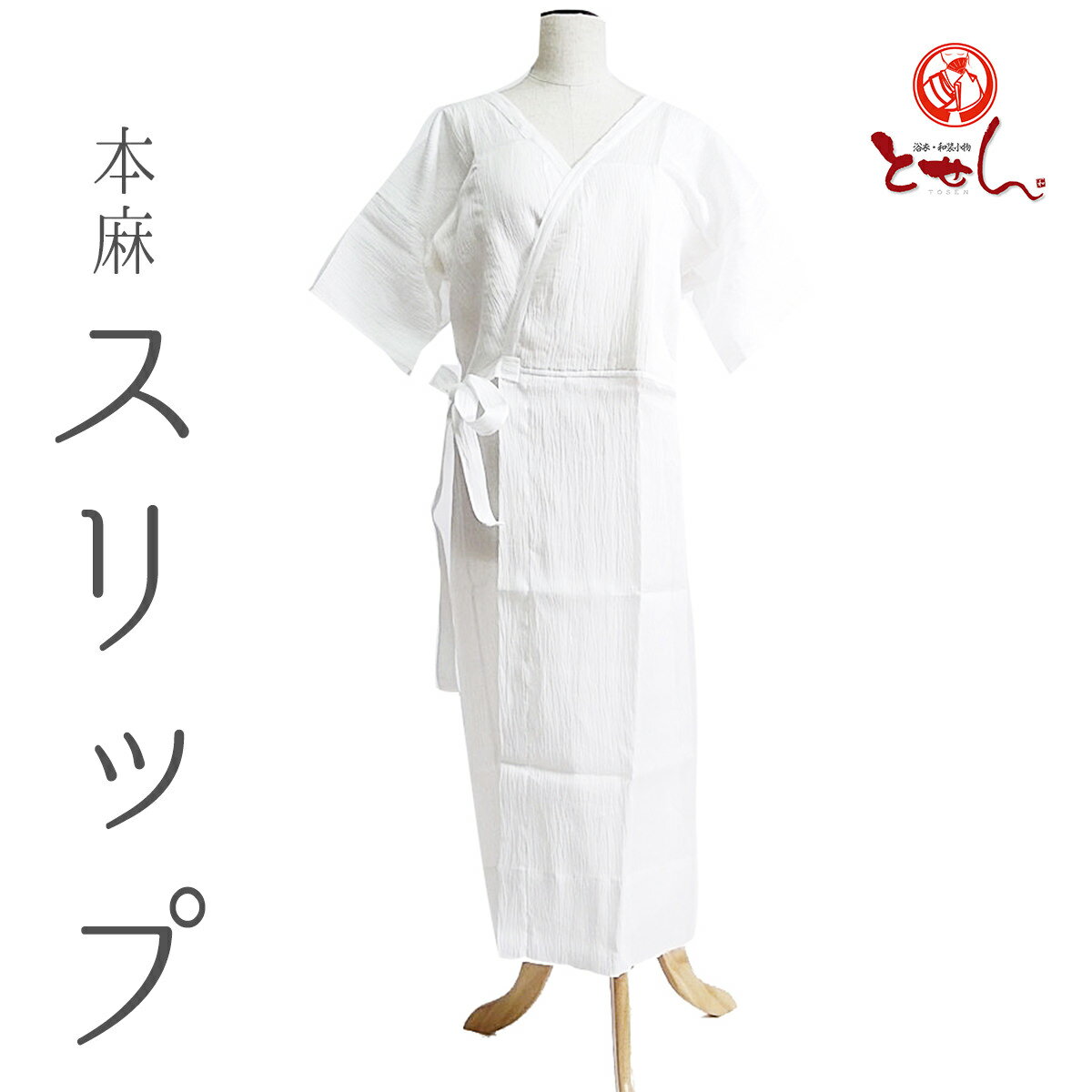 本麻 スリップ M L 白 ジョーゼット 手もみ楊柳 燈芯あしべ織 胴部灯芯使用 汗取り 麻100% ワンピース 夏用 和装小物 着物 着付け 御稽古 kim