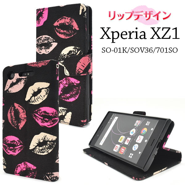 送料無料 手帳型ケース Xperia XZ1 SO-01K / SOV36 / 701SO ケース 手帳 手帳型 唇 リップ 口紅 黒 ブラック ドコモ docomo au ソフトバンク SONY ソニー エクスペリアXZ1 スマホカバー 耐衝撃 柔らかい 携帯ケース 人気 おしゃれ オススメ 大人 so01k
